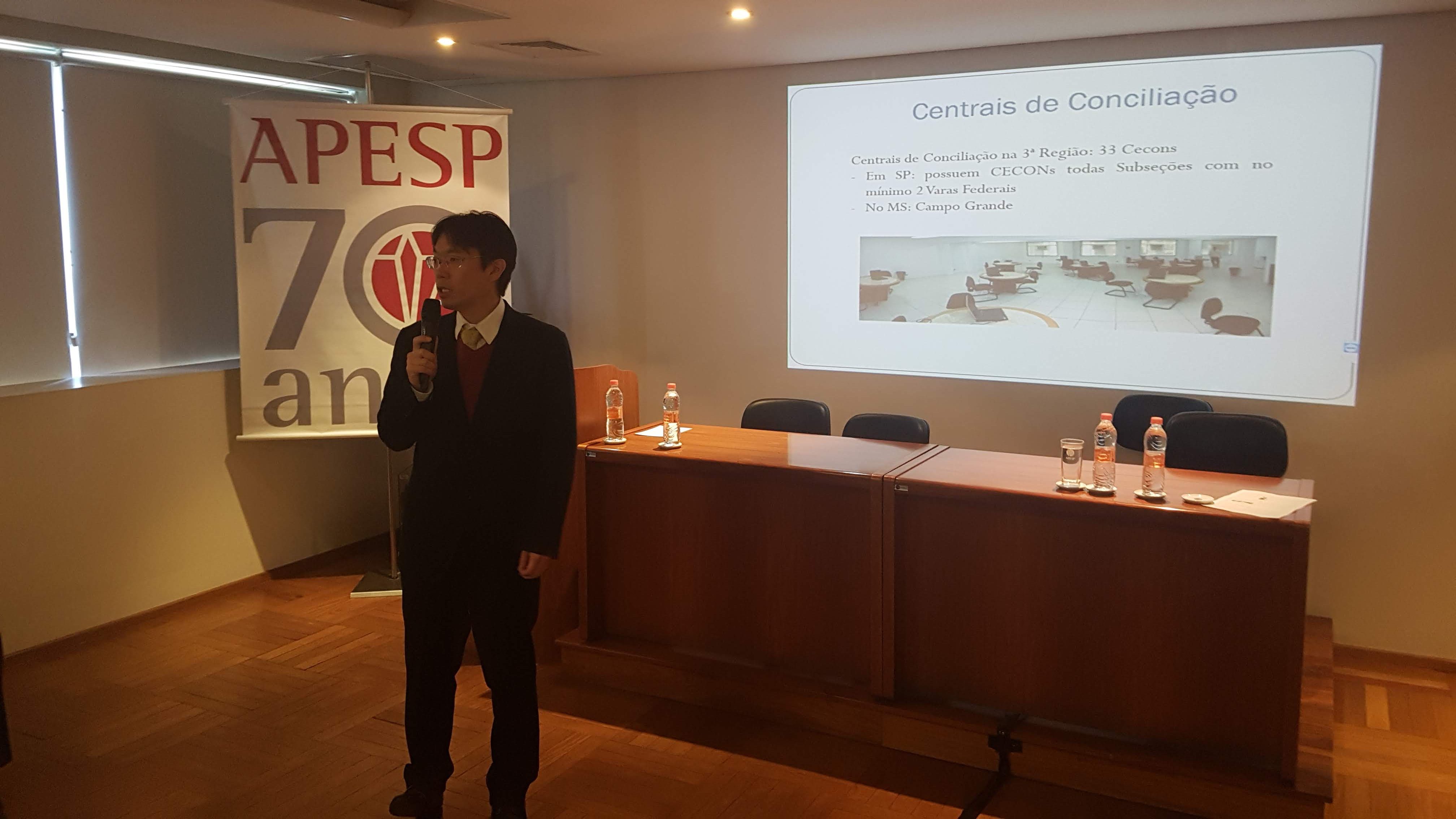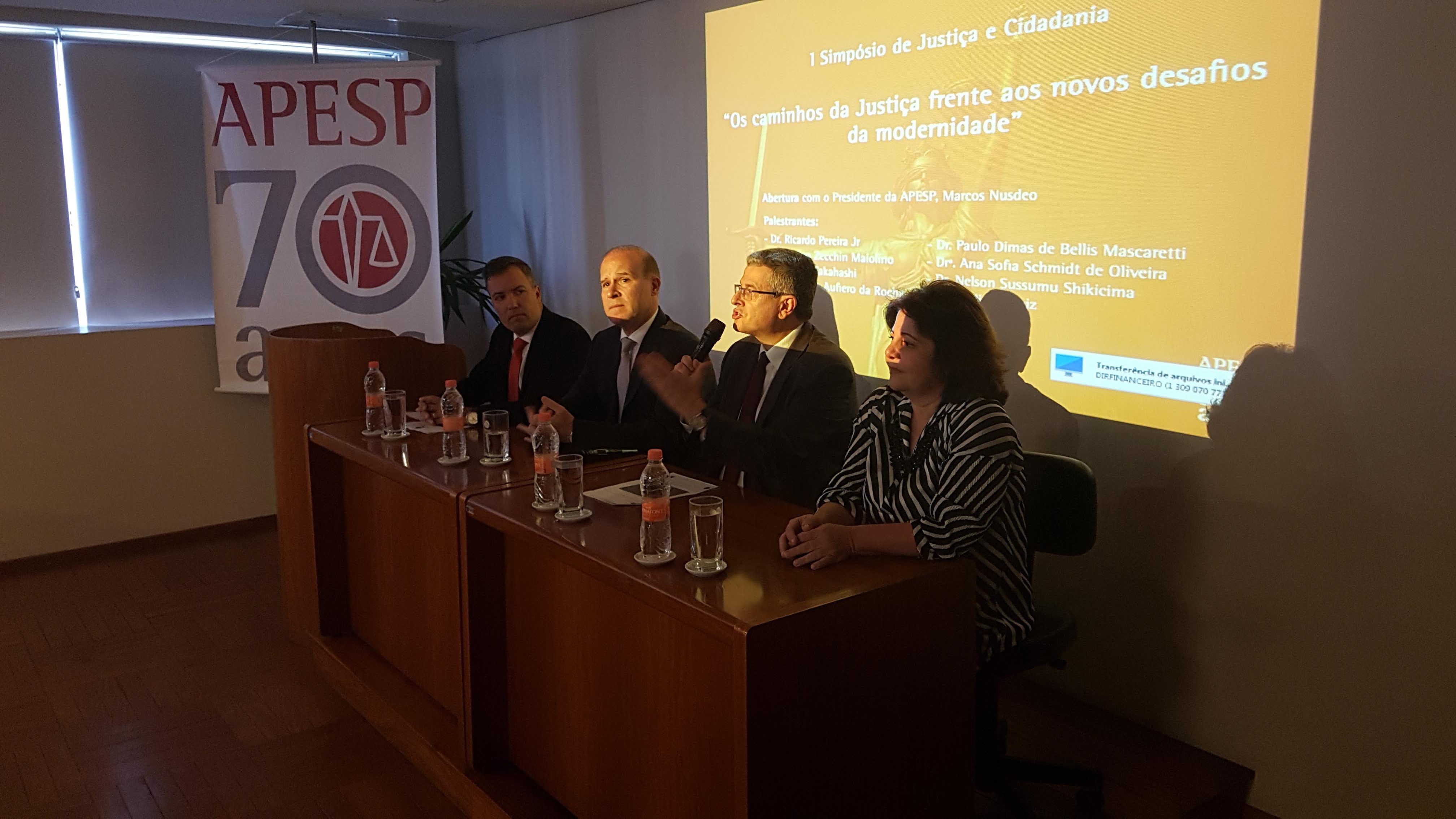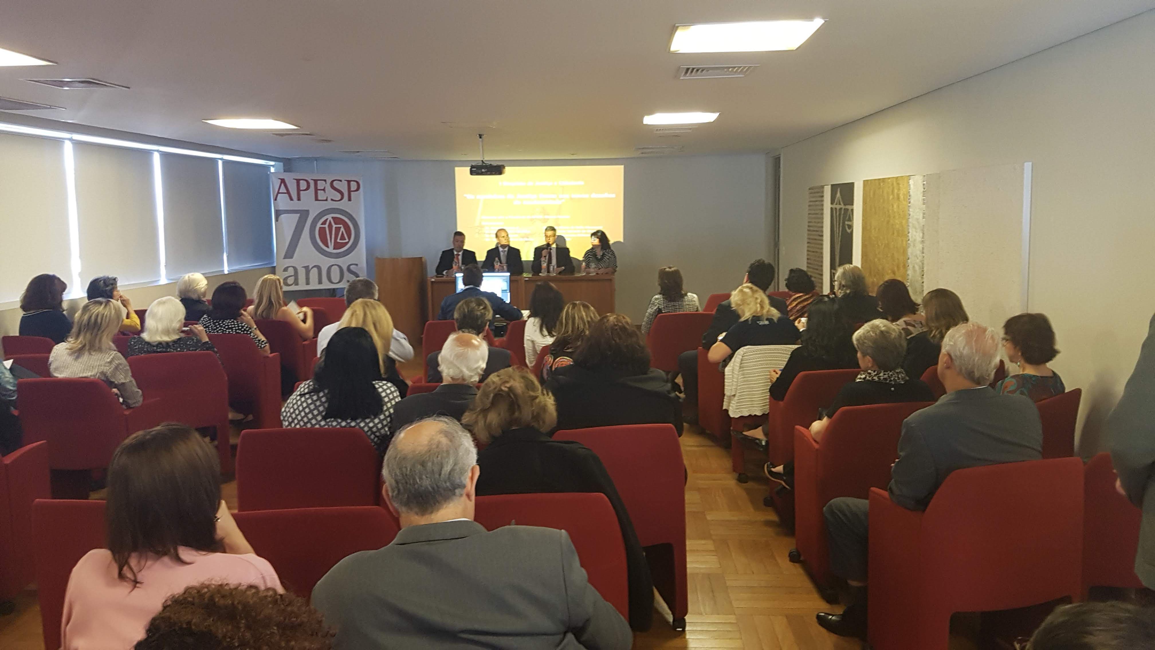 Ocorreu hoje (22/10) o I Simpósio de Justiça e Cidadania – uma realização da APESP, em parceria com o CEJUSC Fazenda Pública do TJ-SP. O evento – organizado pela Secretária Geral da APESP, Mônica Zingaro, e pelo mediador do CEJUSC, Sérgio Keppler- foi aberto pelo Presidente da Associação, Marcos Nusdeo, e contou com uma plateia de mais de 60 participantes – entre Procuradores do Estado e outros operadores do Direito.
