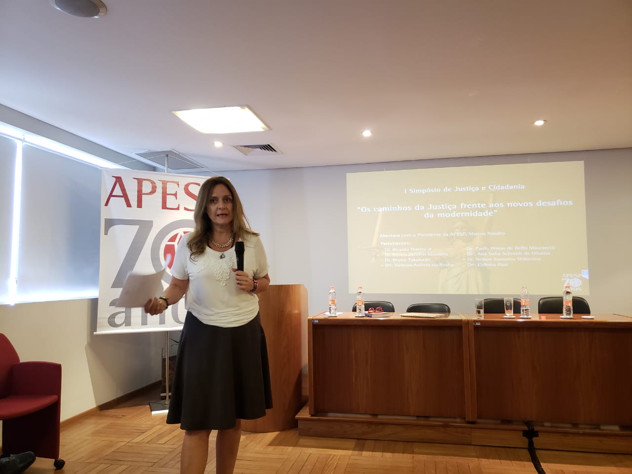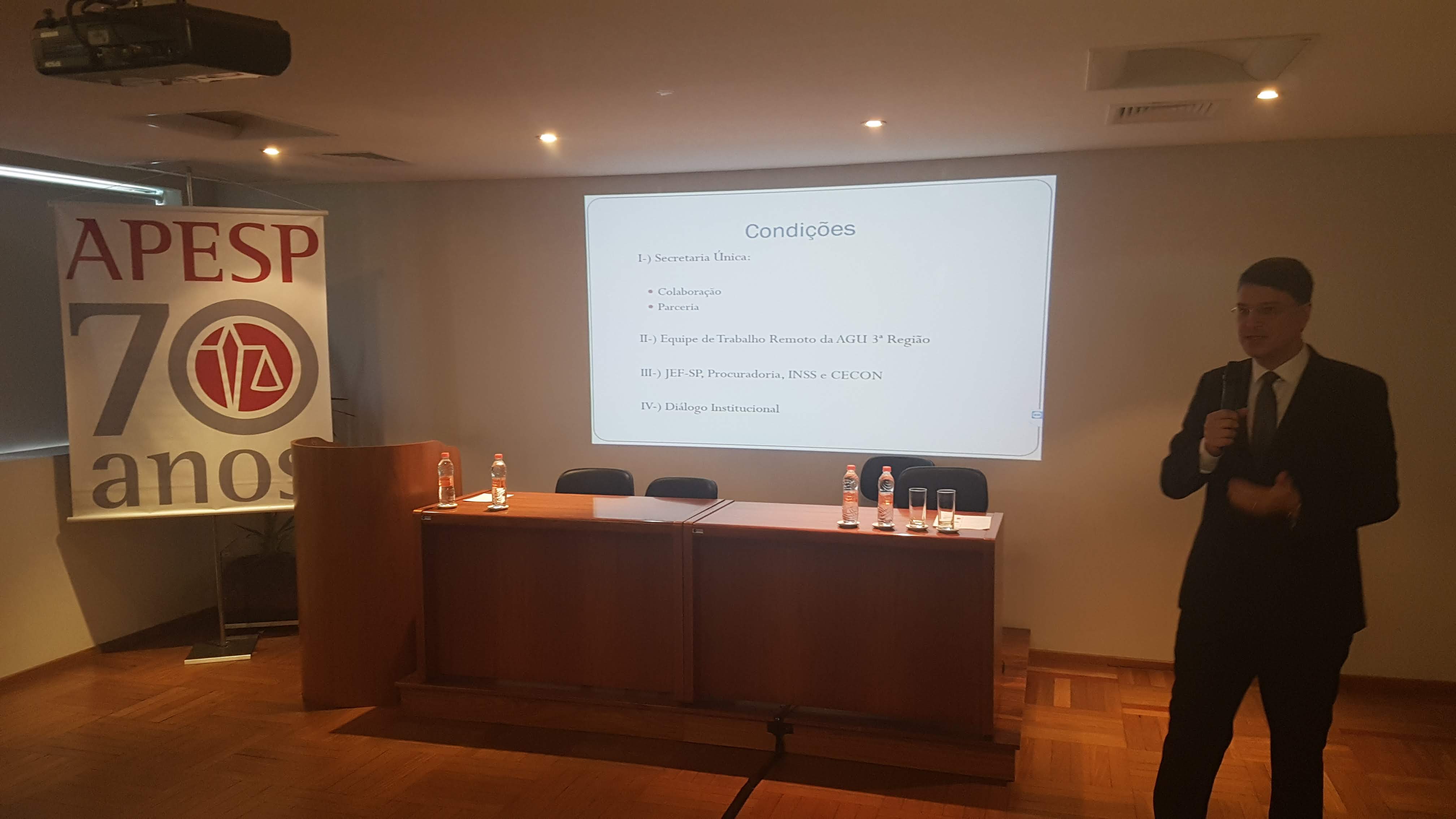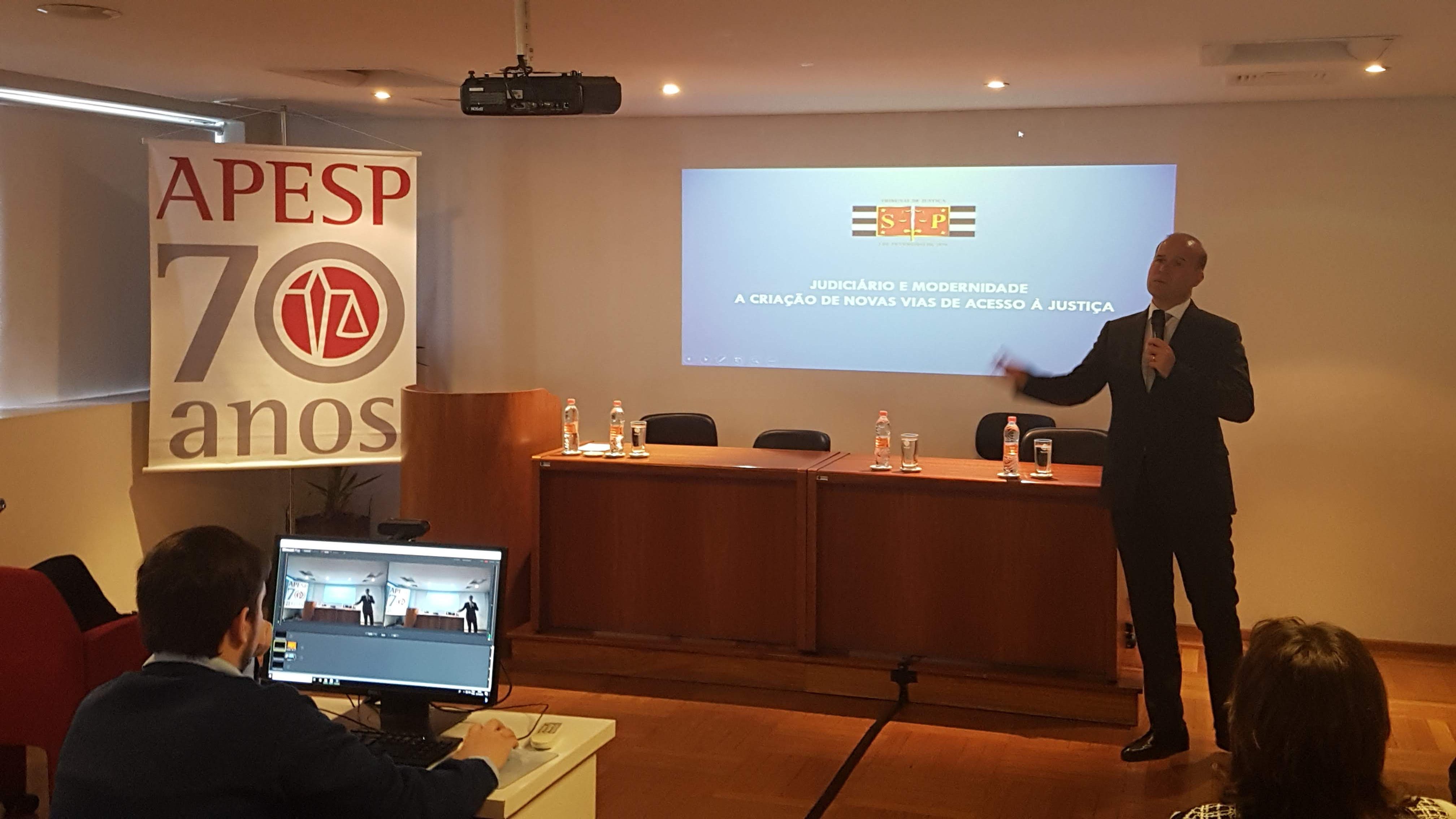 Ocorreu hoje (22/10) o I Simpósio de Justiça e Cidadania – uma realização da APESP, em parceria com o CEJUSC Fazenda Pública do TJ-SP. O evento – organizado pela Secretária Geral da APESP, Mônica Zingaro, e pelo mediador do CEJUSC, Sérgio Keppler- foi aberto pelo Presidente da Associação, Marcos Nusdeo, e contou com uma plateia de mais de 60 participantes – entre Procuradores do Estado e outros operadores do Direito.