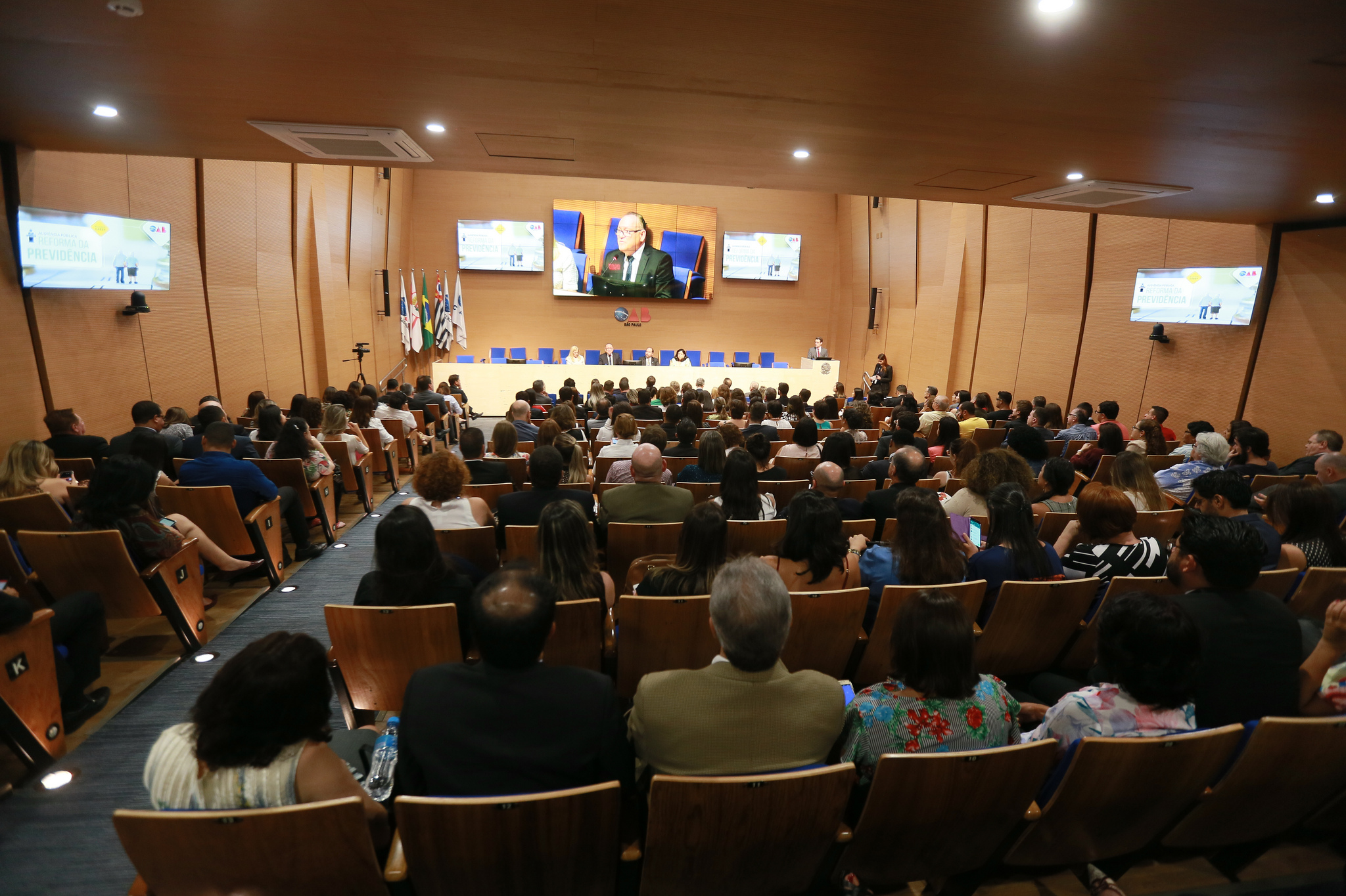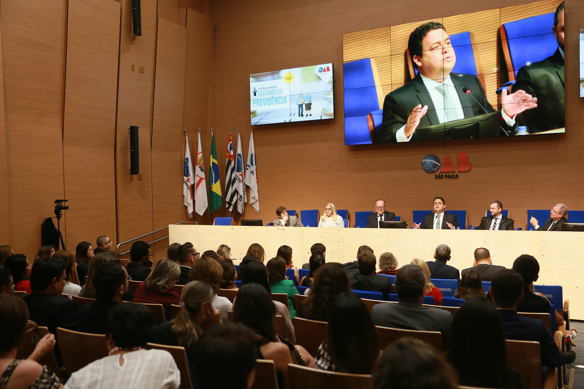 Na tarde de ontem (26/3), a OAB-SP promoveu uma audiência pública sobre a PEC 6/2019 – Reforma da Previdência. Com um auditório repleto, o evento proporcionou a participação de vários especialistas na questão previdenciária e também de representantes de entidades de trabalhadores da iniciativa privada e de entidades representativas dos servidores. Em sua maioria, as manifestações criticaram a proposta apresentada pelo Governo. Durante um período da audiência, estiveram presentes o Presidente da OAB-SP, Caio Augusto Silva dos Santos, e o Presidente CFOAB, Felipe Santa Cruz.