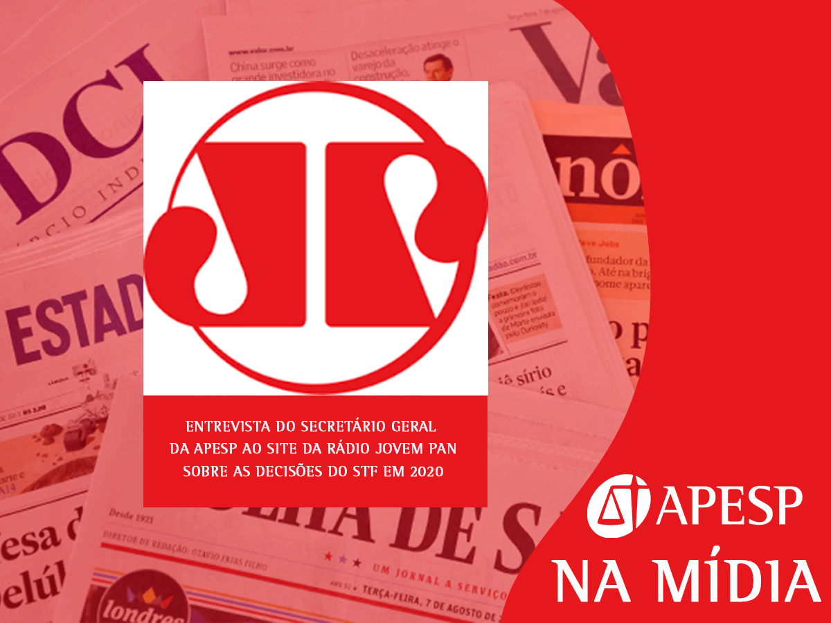 🔴 APESP na Mídia: confira a entrevista do Secretário Geral da APESP, José Luiz Souza de Moraes, ao site da rádio Jovem Pan sobre as importantes decisões tomadas pelo STF em 2020. Destaque para o papel dos estados e municípios no enfrentamento da pandemia. Confira a íntegra no link: