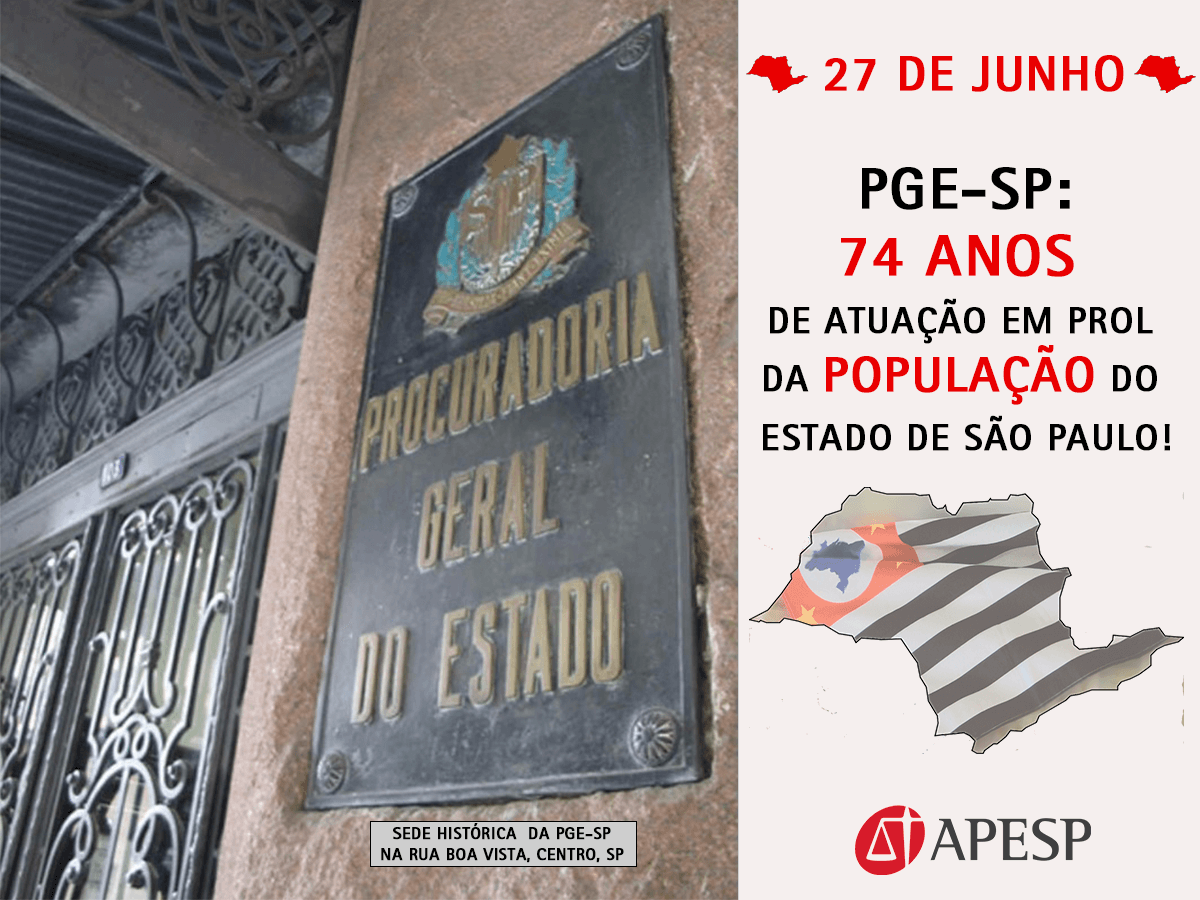 ⚖ Criada em 27 de junho de 1947, inicialmente como Departamento Jurídico do Estado, a Procuradoria Geral do Estado de São Paulo completa hoje 74 anos de existência, com uma atuação de excelência em prol do interesse público.
