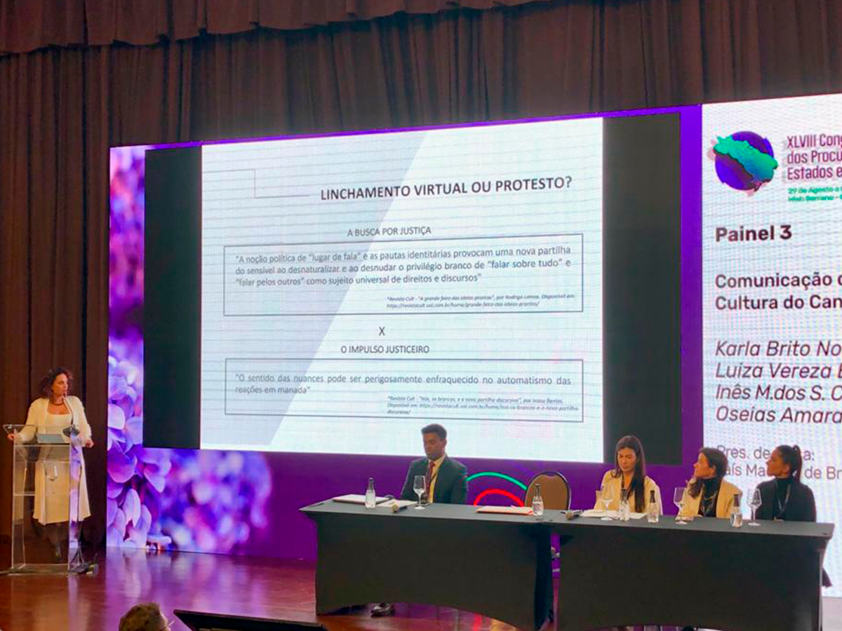 Ainda na programação de ontem, a Procuradora Geral do Estado de São Paulo, Inês Coimbra palestrou sobre Comunicação de Massa e a Cultura do Cancelamento.