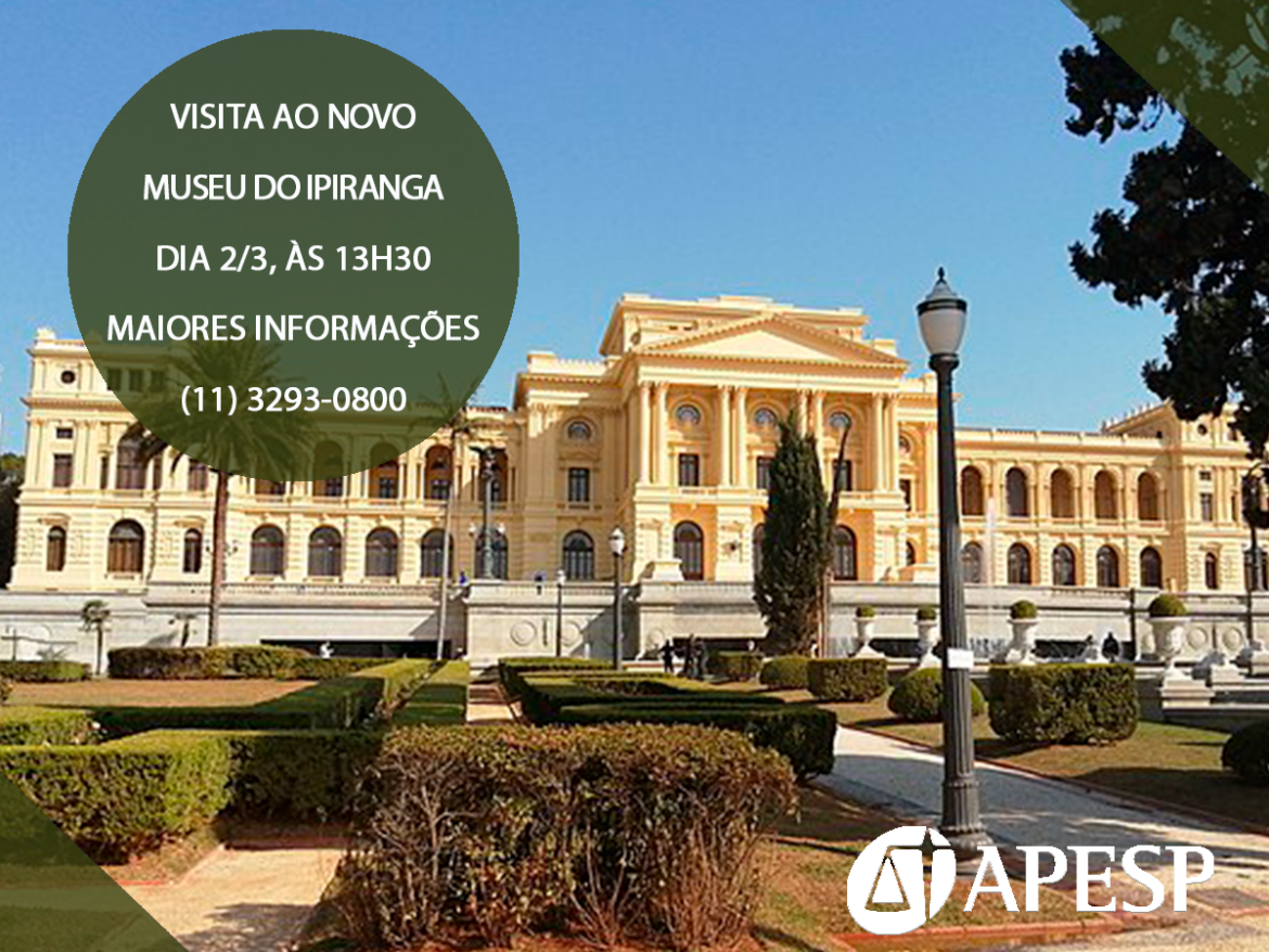 No próximo dia 2/3 (quinta-feira), às 13h30, a APESP organizará uma visita ao novo Museu do Ipiranga, que foi restaurado, modernizado e entregue à população brasileira durante as comemorações do Bicentenário da Independência do Brasil em 2022.