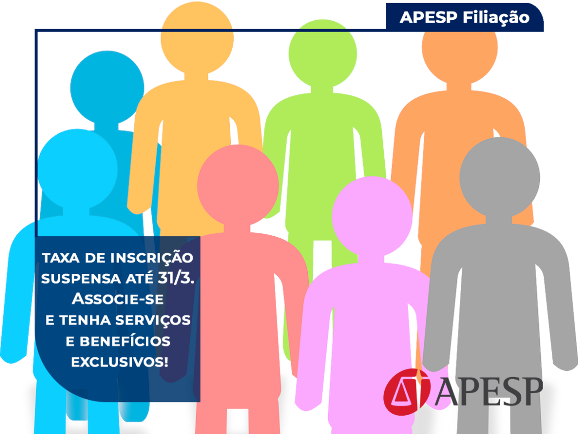 Os colegas que desejarem se associar à APESP estarão isentos durante 30 dias (até o próximo dia 31 de março) do pagamento da taxa de inscrição.